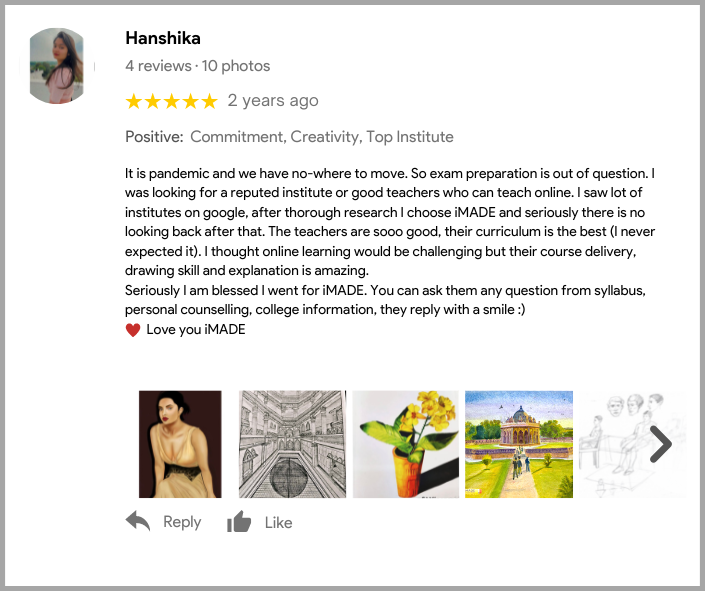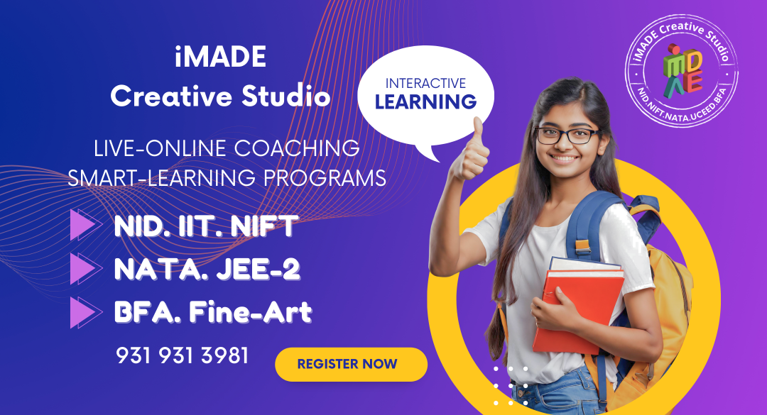 Welcome to iMADE Creative Studio, where imagination meets innovation, and dreams come to life! iMADE is India’s No.1 Online Coaching for NID, NIFT, NATA, IIT-CEED, FINE-ARTS operating for 10+ year operating from Delhi & with 2650+ student results in Top colleges.